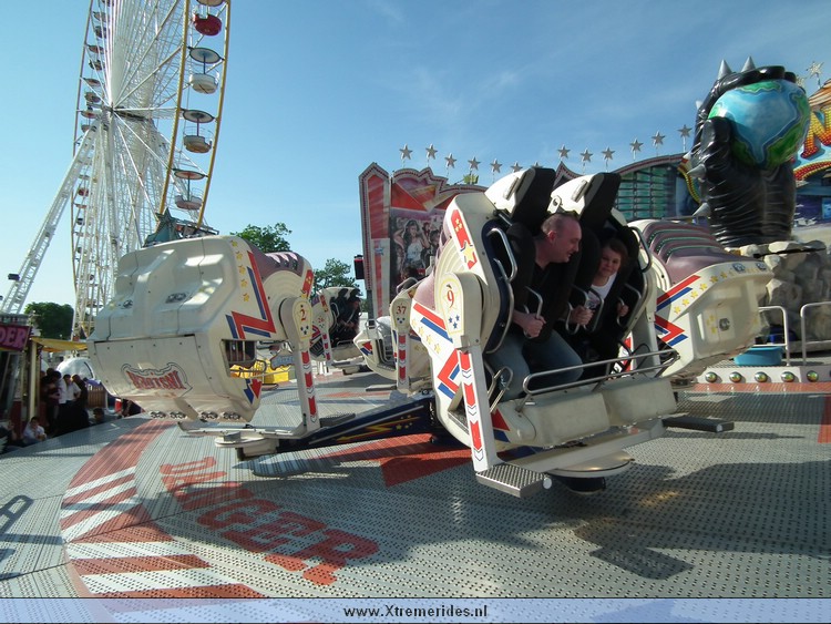 Met dit soort dingen moet je niet naar een grote kermis komen. Zeker niet als er een Star Flyer staat van Goetzke. Toch proberen ze het maar hij draaide meer leeg dan vol. S' avonds liet hem zelfs leeg draaien om te laten zien dat die er nog is