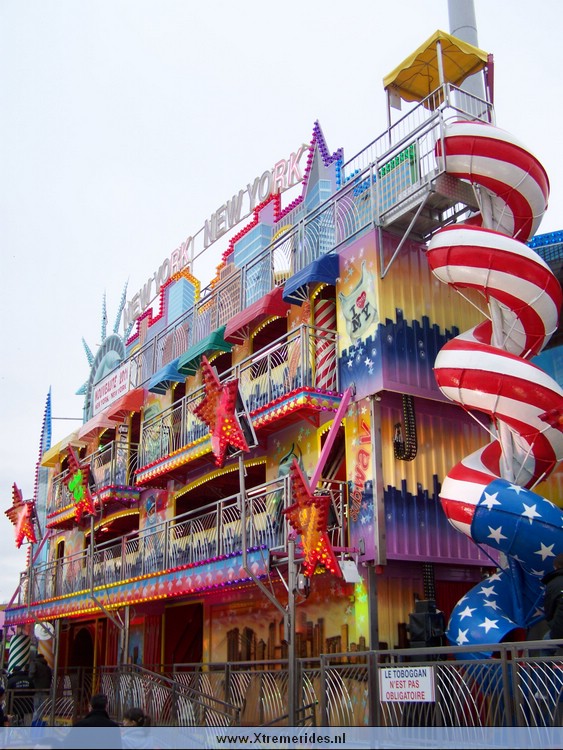 Voila, een glijbaan er naast. Je hebt er op deze kermis zelfs 2