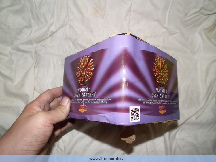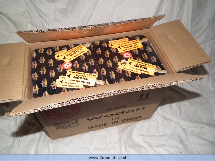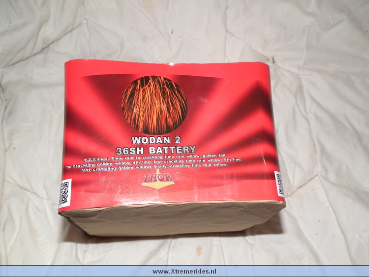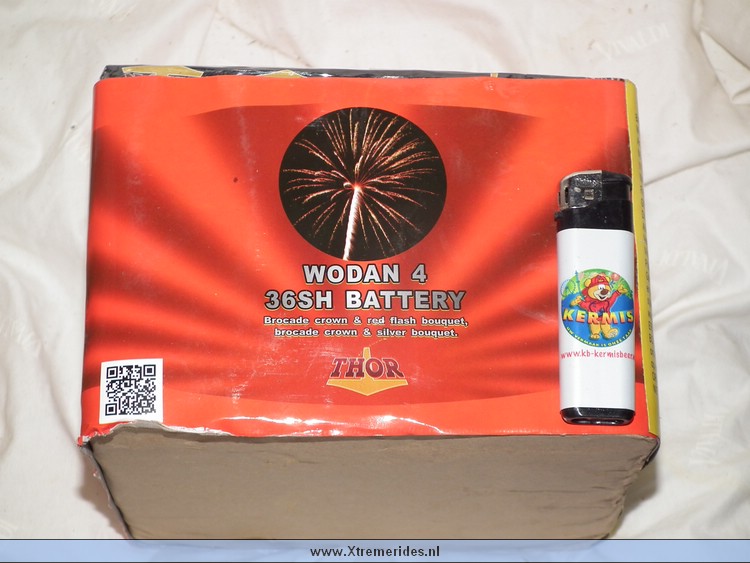 Wodan 4/D is een mine cake die alleen gevuld is met mines. Dit is wel een oplettertje omdat veel mensen dat niet willen hebben maar zo'n cake kan je prima combineren met 123. Als je op een afstandje staat heb je onderin mines en boven die mines dan boeketten. Prachtig gezicht, zo maak je in je eigen straat een complete vuurwerk show