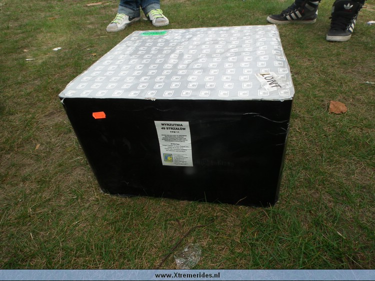 Verder is de doos compleet zwart en heeft een etiket: TPW 11. Aangezien ik toch niet hoefde te betalen heb ik hem maar mee gepakt want ik wilde wat groter kaliber blokken schieten en 2 inch is een mooie maat. Bovendien was die 49 schoten wat toch al best een fors aantal is